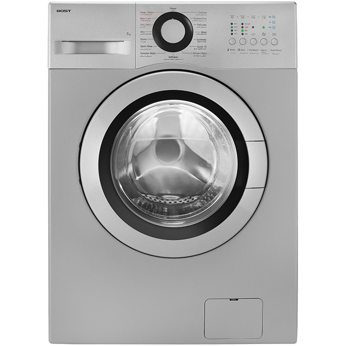 ماشین لباسشویی اتوماتیک بست مدل BW‑711‑10 با ظرفیت ۷ کیلوگرم، یک گزینه کارآمد برای شستوشوی منظم و متنوع لباسهای خانگی است. این دستگاه با موتور تسمهای و سرعت چرخش ۱۰۰۰ دور در دقیقه، شستوشوی قابلاعتماد و نسبتاً کمصدا (۵۴ دسیبل) را ارائه میدهد. گرید انرژی A+++ در کنار رده مصرف آب C نشان میدهد که بهینهسازی مصرف برق در طراحی آن مورد توجه بوده، هرچند میزان مصرف آب بالاتر از بعضی مدلهای همرده است. درام نسل جدید هگزا (Hexa Drum) از جنس استیل ضدزنگ با طراحی ششضلعی، حرکت ملایم و یکنواخت لباسها را ممکن کرده و همراه با سیستم پخش یکنواخت البسه و بالانس اتوماتیک، از تجمع بار در یک نقطه جلوگیری میکند. این ویژگیها مانع لرزش و صدای اضافی در حین کار میشوند. فناوری نانو سیلور به ضدعفونی داخلی کمک کرده و از بوی نامطبوع و رشد باکتریها جلوگیری مینماید. این مدل دارای ۱۵ برنامه اصلی شستوشو است که از چرخه سریع ۱۹ دقیقهای تا برنامههای با دمای بالا (تا ۹۵ درجه سانتیگراد) را پوشش میدهد. قابلیت تنظیم سرعت دور موتور و دمای شستوشو بر اساس جنس و نیاز پارچه، انعطاف بالایی ایجاد میکند. تکنولوژی بخارشوی با نفوذ بخار به الیاف، به ازبینبردن لکهها و کاهش چروک کمک کرده و فرآیند اتوکشی را سادهتر میسازد. سیستم تمیز کردن خودکار نیز عمر بهداشتی دستگاه را افزایش میدهد. از امکانات ویژه میتوان به قابلیت خشککن، آبکشی شرعی برای تطهیر لباسها، انتخاب برنامهها با زبان فارسی و نبود نمایشگر وضعیت اشاره کرد که کاربری دستگاه را ساده ولی فاقد برخی امکانات بصری پیشرفته میکند. بدنه آلومینیومی با طراحی بادیگارد لرزش را کاهش داده و ابعاد ۸۲.۵×۵۹.۵×۵۵ سانتیمتر با درب از جلو و زاویه باز شدن ۱۵۰ درجه (بازشو به سمت چپ) امکان نصب آسان در فضای استاندارد را فراهم میآورد. BW‑711‑10 ترکیبی از کارکرد مطمئن، برنامههای متنوع و قابلیتهای ویژه ضدعفونی و بخارشوی را در یک دستگاه جمع کرده است.