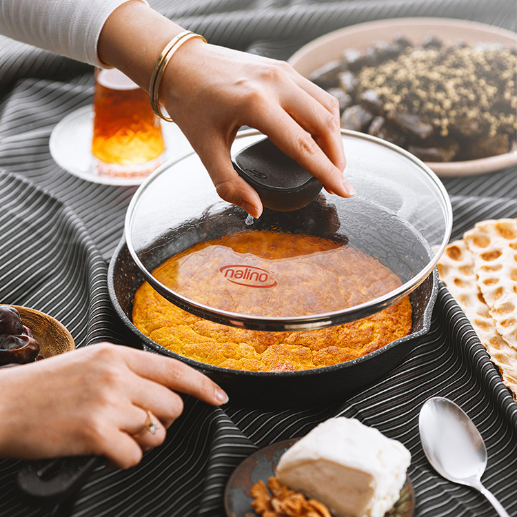 - قبل از هر بار استفاده، میتوانید سطح داخلی تابه را با مقداری روغن چرب کنید تا از چسبیدن غذا جلوگیری شود.