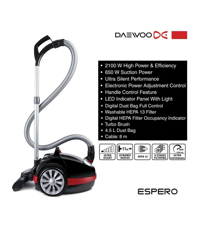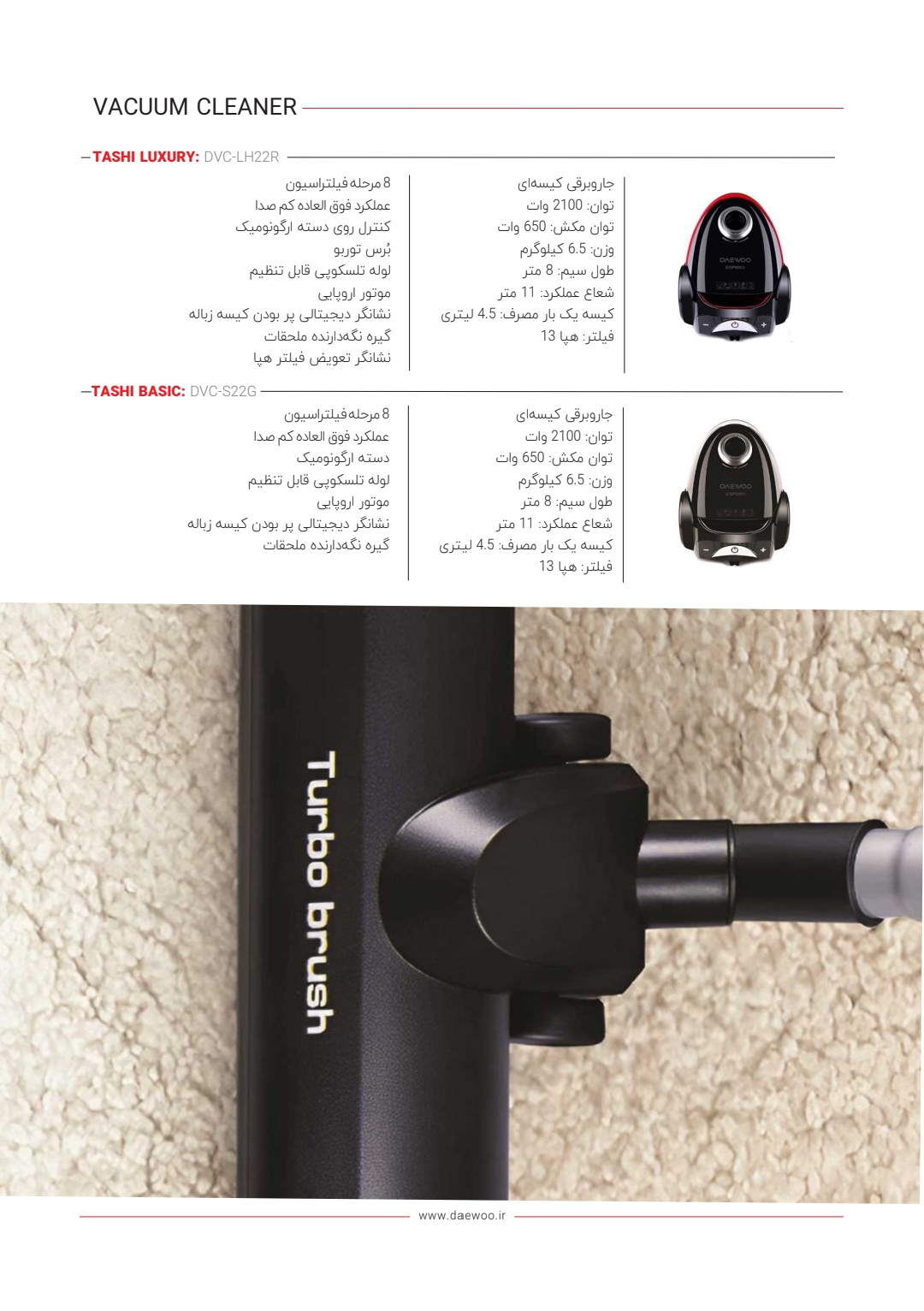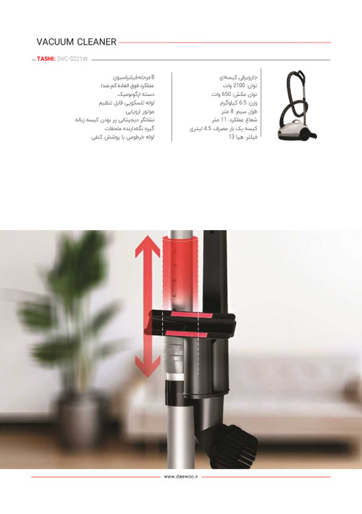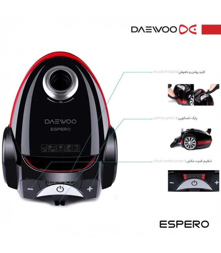 طراحی ارگونومیک دسته جاروبرقی Tashi (اسپرو لاکچری)دوو، موجب استفاده راحت تر کاربر برای مدت طولانی تری می شود. علاوه بر این، کاربر می تواند با استفاده از کلید های کنترل موجود روی دسته، جاروبرقی را خاموش و روشن کند و قدرت مکش دستگاه را نیز تنظیم نماید.